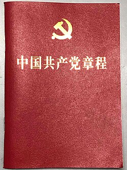 《中国共产党章程》,簡稱中共党章,在中國大陸簡稱党章,是中国共产党的核心文件,規定了黨員的權利和義務、黨的組織方式等內容。只有中国共产党全国代表大会可以對其進行修改。