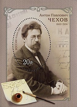 2010年俄羅斯著名作家契訶夫誕辰150週年紀念郵票小型張上的個人肖像