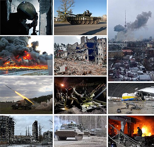 在經歷了长约一年的軍事危機後,俄羅斯于2022年2月24日全面入侵烏克蘭,标志着自2014年广场革命、并吞克里米亚和顿巴斯战争以来俄乌两国地缘政治冲突的重大升级。此次入侵为自第二次世界大战以来发生在欧洲大陆的最大规模的战争之一。