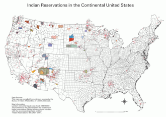 由美国内政部印第安事务局负责規劃。 美国目前有326个保留地,意味着全国550余个聯邦認定的部落并不是都有保留地;某些部落有多于一个,某些没有,或者一個保留地裡面有多個部落等。由于印第安人的分布错综复杂,在某保留地内部常常有其它部落或者非保留地的飞地。