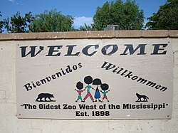 美國密西西比州一個動物園的歡迎路牌同時寫有英文(Welcome)、西班牙文(Bienvenidos)和德文(Willkommen)
