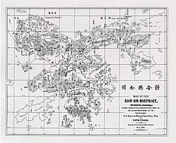 1866年(清同治七年)新安縣全圖,由意大利米蘭外方傳教會傳教士佛倫特里(或稱安西滿神父、和神父)繪製,中英對照。