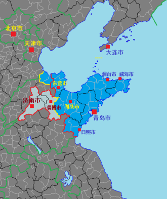 • 地级市:烟台市、潍坊市、淄博市、威海市、日照市、东营市
