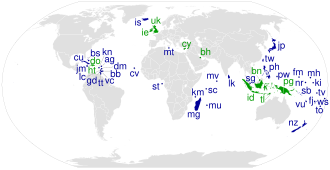 截至2004年中旬為止,世界上共有49個島國,由於許多獨立與半獨立自治區都是位於島嶼之上且隨時都有可能改變政府狀態,因此這數字很有機會因此而增減。