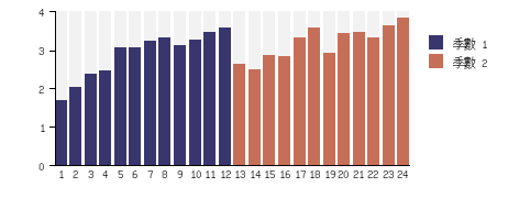 • 收視最低的集數以藍色表示,收視最高的集數以紅色表示,而空格則表示該集的收視沒有相關數據。