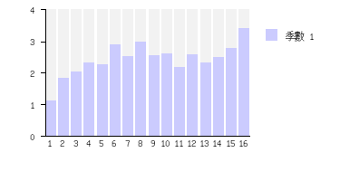 | 1 | 1.119 | 1.835 | 2.039 | 2.331 | 2.273 | 2.909 | 2.521 | 2.985 | 2.571 | 2.616 | 2.179 | 2.588 | 2.318 | 2.496 | 2.777 | 3.404 | |
