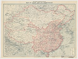 | “ | In attempting a general description of this vast empire, we shall pursue the following arrangement. 1. China Proper—2. Chinese Tartary—3. The States tributary to China. (為試圖對這個龐大帝國做一概括描述,應進行下列解構:一、「中國本部」;二、「中屬韃靼」;三、「中國的冊封屬國」。) | ” |