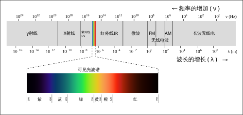 人類眼睛可以觀測到波長大約在400 奈米和700  奈米之間的電磁波,稱為『可見光』。