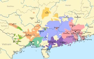 廣西壯族自治區通行的粵語縣市有30多個,即南寧、橫縣、貴港、桂平、平南、藤縣、梧州、玉林、北流、容縣、博白、陸川、防城港、東興、欽州、合浦、浦北、靈山、北海、蒼梧、岑溪、昭平、蒙山、賀州、鐘山、百色、崇左、扶绥、宁明、凭祥及龙州。