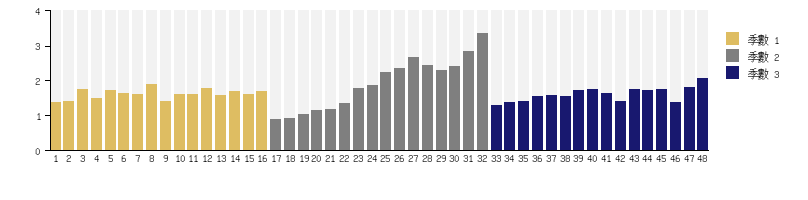 | 44 | 12 | 1部 | 2022年4月16日 | 7.167% | 1.527 | 8.033% | 0.800 | 5.13% | 1.47% |