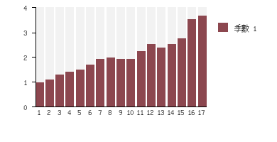 | 1 | 0.992 | 1.111 | 1.308 | 1.417 | 1.501 | 1.696 | 1.937 | 1.998 | 1.930 | 1.918 | 2.242 | 2.522 | 2.399 | 2.516 | 2.749 | 3.534 | 3.668 | |