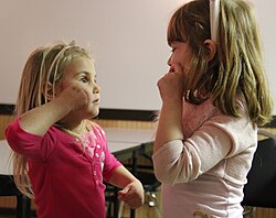 然而,有研究指出澳大利亚的栗冠弯嘴鹛能够将相同的声音元素以不同方式编排,来产生两种功能迥异的发音。此外,斑鸫鹛也显露出利用两种相同类型的声音作类似行为的能力,这两种类型的声音只能靠声音元素重复的次数去辨别。的确,一些物种确实能够通过社会学习来获得一些交流形式。比如,一只名叫坎茲的倭黑猩猩学会了用一套耶基斯語手语来表达自己的意愿;很多鸟类和鲸类也通过模仿同类学会歌唱。然而,虽然这些动物可以掌握大量的词语和符号,但它们能学会的记号数量最多只相当于平均4岁的人类儿童,也没有掌握任何类似人类语言里面语法一样的规则。
