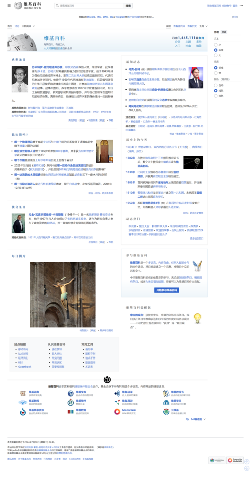 中文(中国大陆)语言下中文维基百科的首页