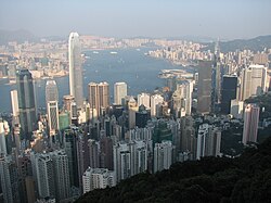從太平山上所拍攝的景觀,下半部為港島北岸一帶商業區