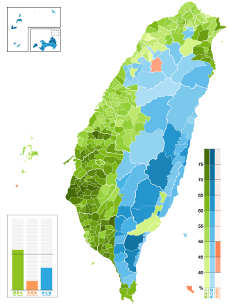 民進黨於今次選舉中獲得勝利,同時達到行政及立法也屬於同一黨的「完全執政」局面。