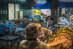2月17日,博愛醫院將急症室對出的露天停車場設置為帳篷用作臨時安置患者,有視察過的官員形容情況如第三世界。